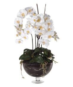 Didelė balta orchidėja stikliniame vazone