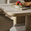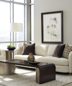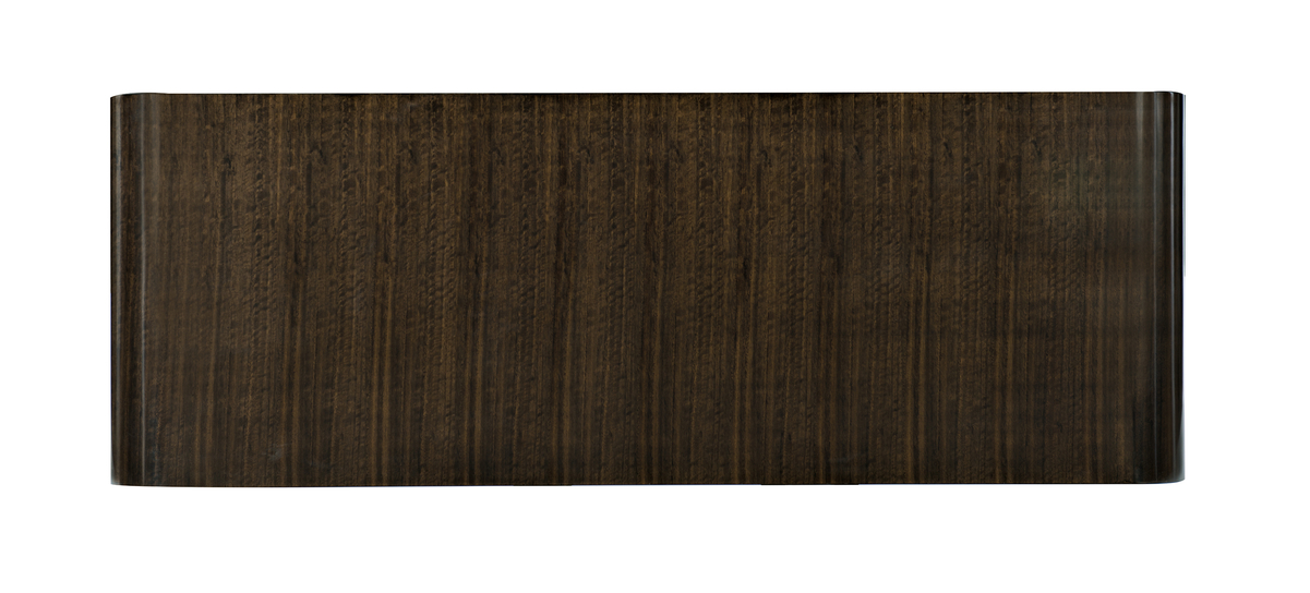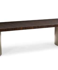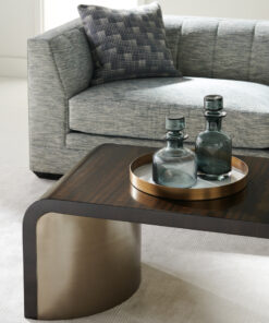 Šio stačiakampio, be aštrių kampų, stalviršį gaubia eukalipto mediena, dengta sodriu “Aged Borboun” blizgesiu. Staliuką laiko du dideli, pusmėnulio formos pjedestalai, padengti “Smoked Bronze” apdaila. Šio kokteilių staliuko glotnūs, elegantiški linkiai neliks pamiršti.