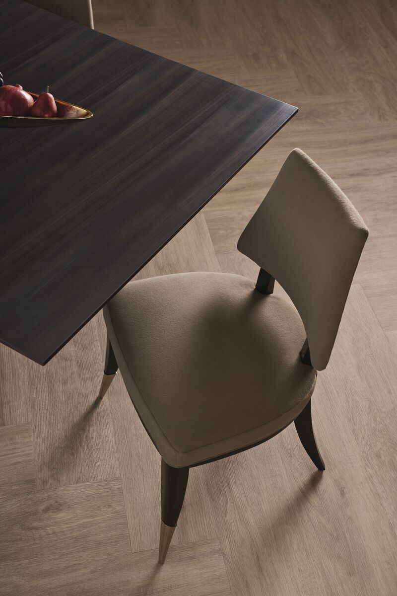 Stilingas valgomojo krėslas pasižymi minkštu, skulptūrišku atlošu ir pliušine sėdyne, puikiai tinkančia linksmiems ir ilgiems pokalbiams prie stalo.