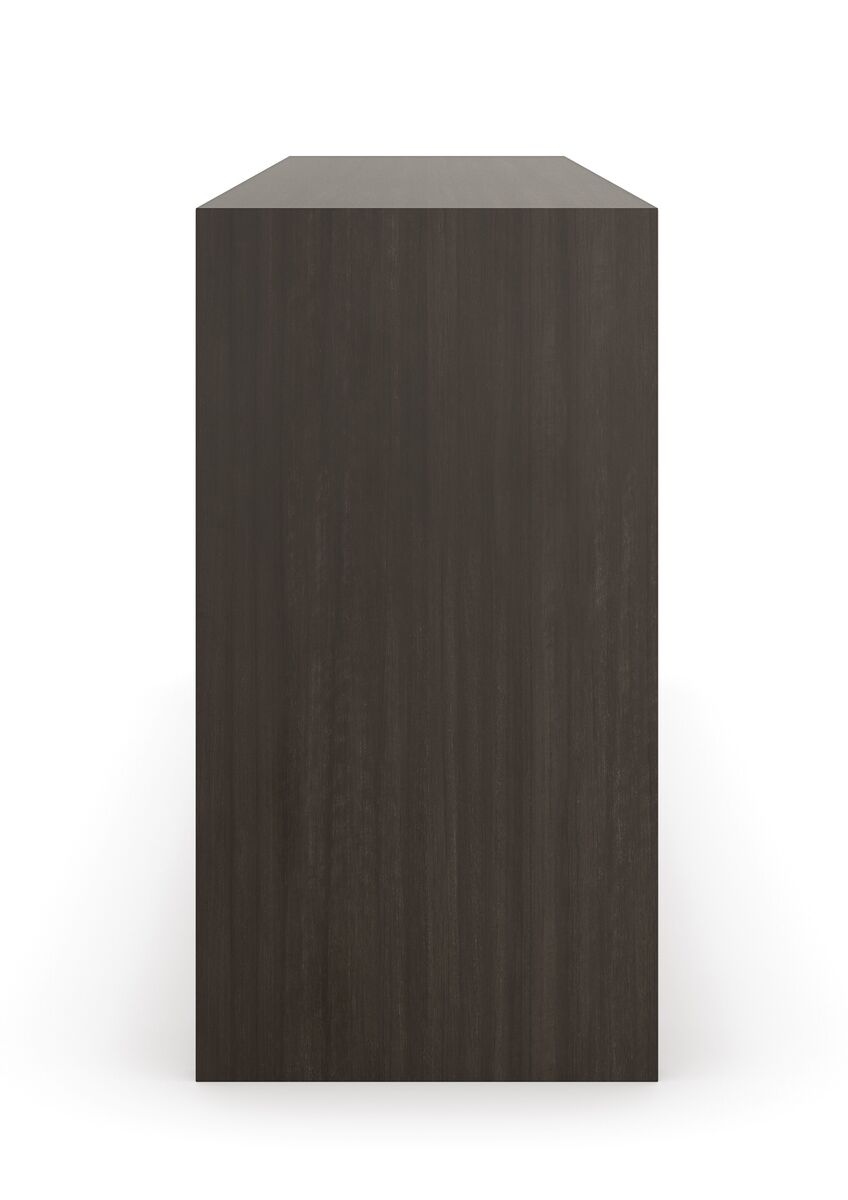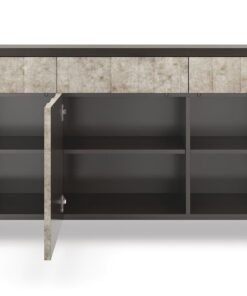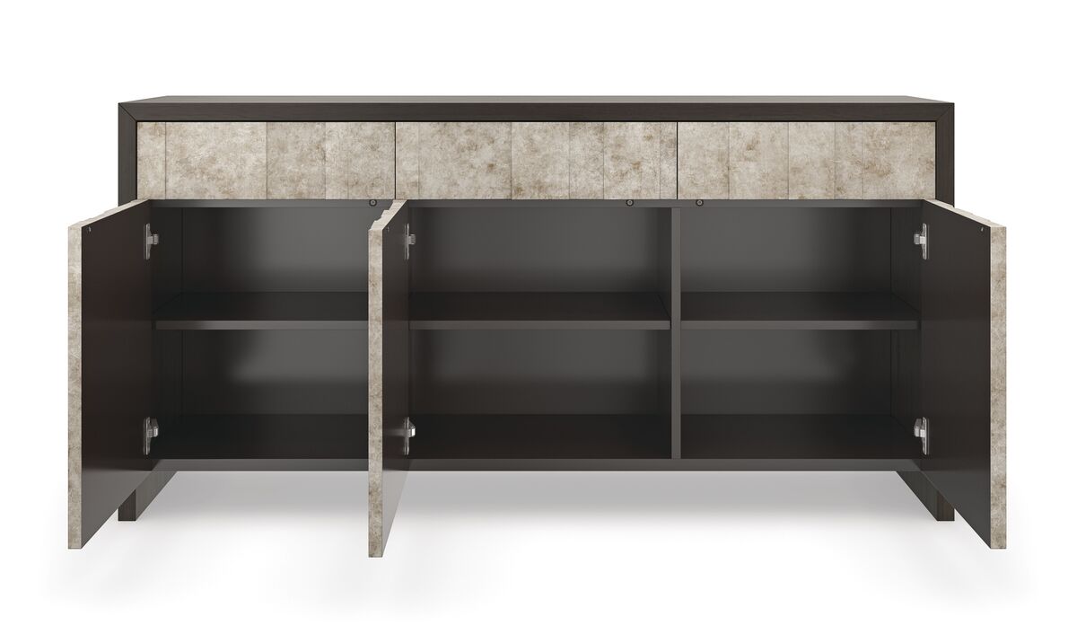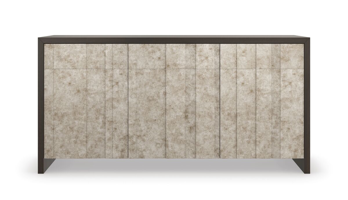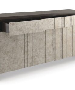 Šiltu, žėručio mineralus primenančiu blizgesiu, ši daugialypė indauja sukuria šviesos ir šešėlio žaismą. Rankomis dekoruotas sudėtingas sidabro lakštas apgaubia įvairių matmenų dureles ir stalčius su liežuvėliu, suteikdamas jiems gylio ir atspindžio. “Dark Chocolate” spalvos viduje, yra reguliuojamo aukščio lentynos už kiekvienų durelių, kad būtų patogiau susidėti daiktus, o spintelė specialiai sukurta taip, kad atrodytų puikiai bet kokiame interjere.
