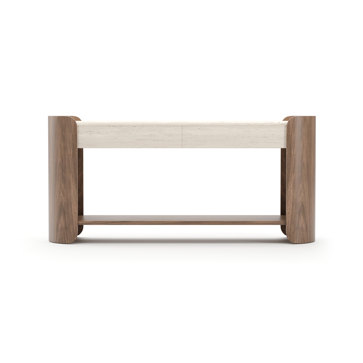 „Fleur“ konsolinis staliukas spinduliuoja nesenstantį žavesį, pasižymintis neužpildytu travertino stalviršiu, kurį papildo elegantiškas “Porcini” dekoruotas korpusas. Grakštus jo siluetas – tai ryškus šiuolaikinio prašmatnumo ir klasikinio rafinuotumo derinys.