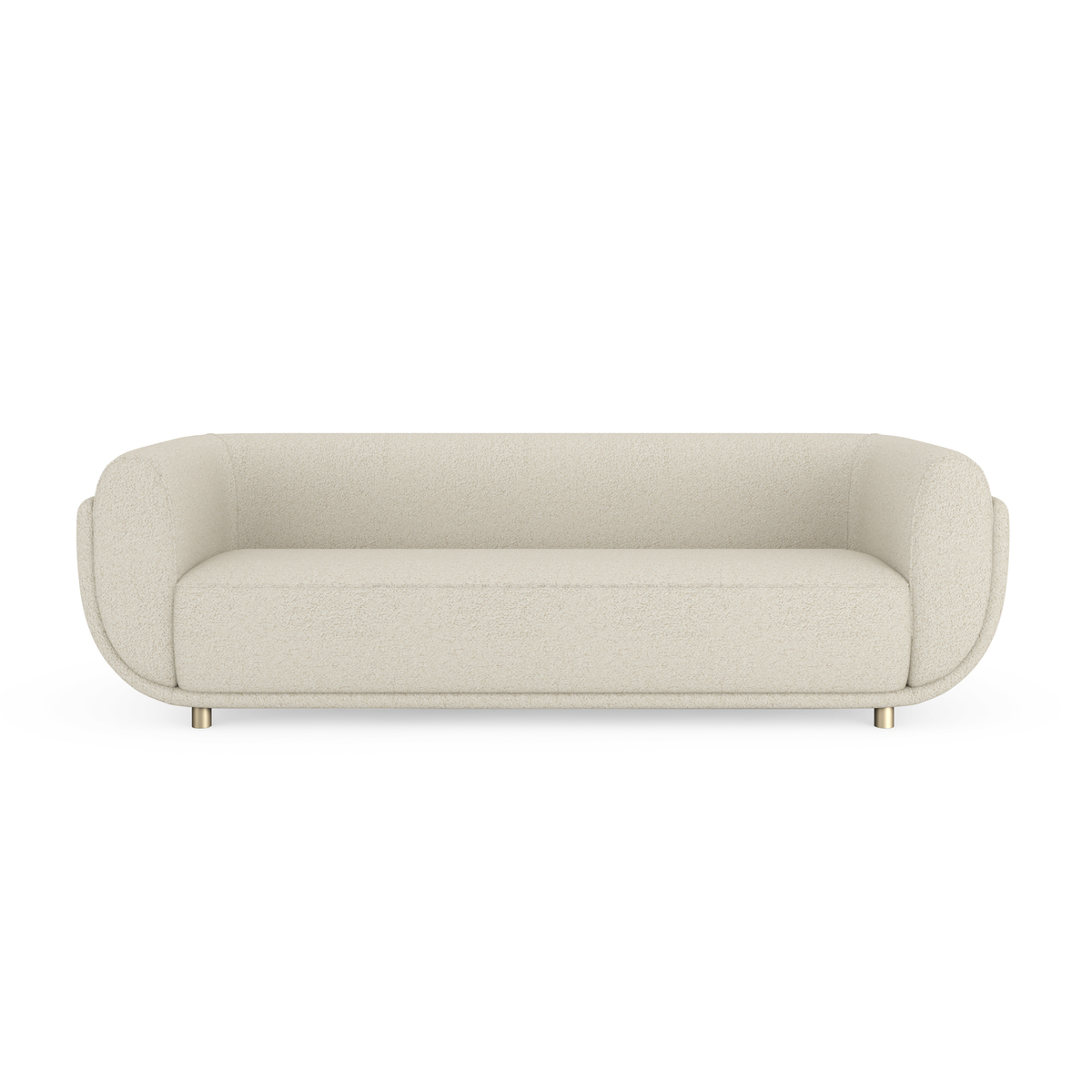Šios visiškai aptrauktos sofos ramybė prasideda nuo raminančio dramblio kaulo spalvos, melanžo stiliaus buklė audinio, supančio atlošą ir gilią, ilgą sėdynę. Žemesnio aukščio, pastatyta ant trumpų, apvalių “Whisper Of Gold” spalvos kaištinių kojelių.
