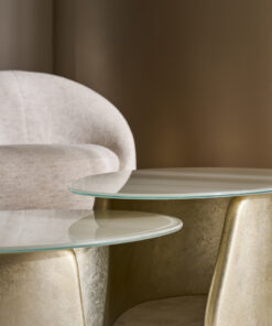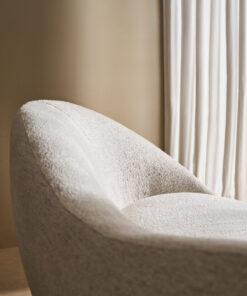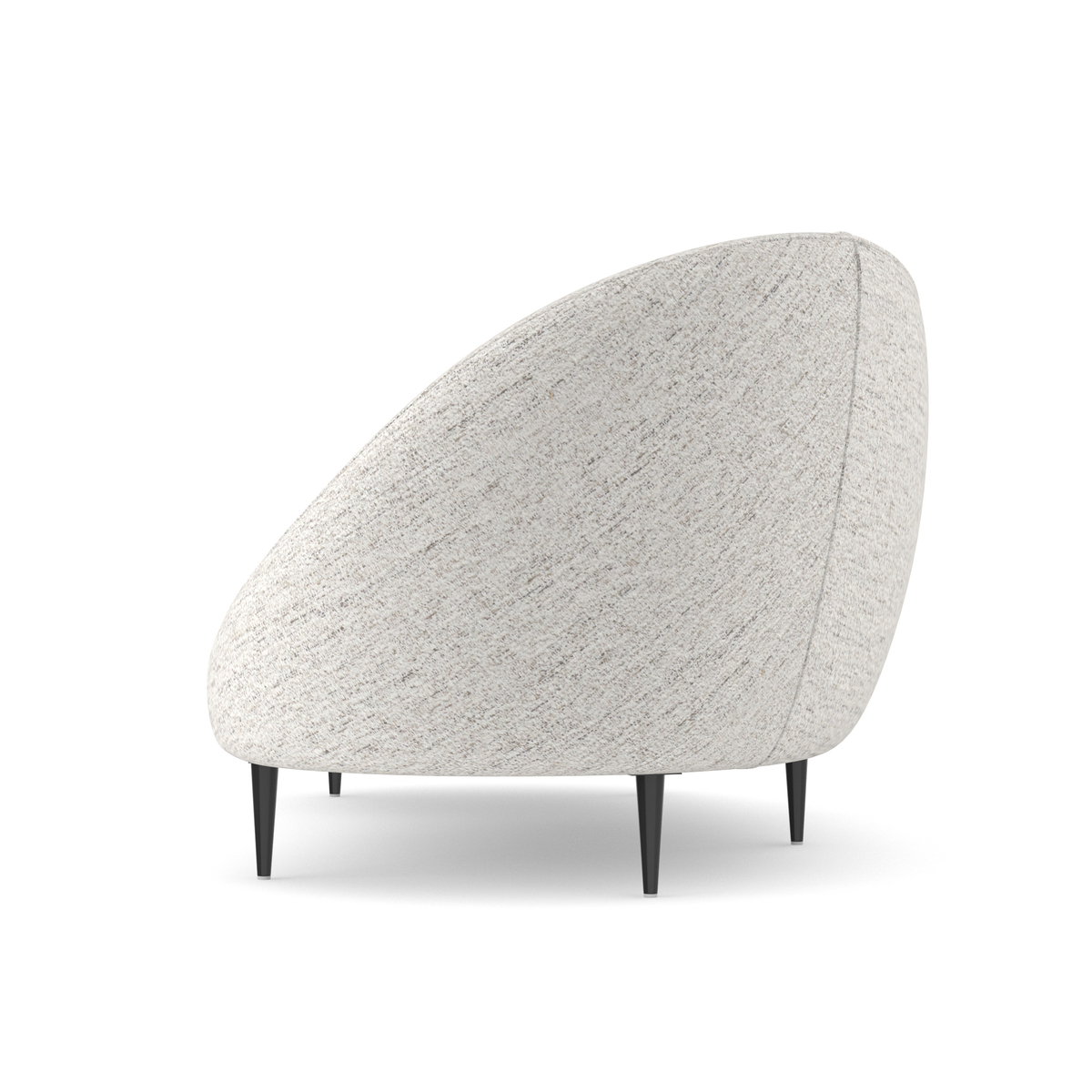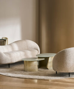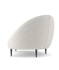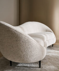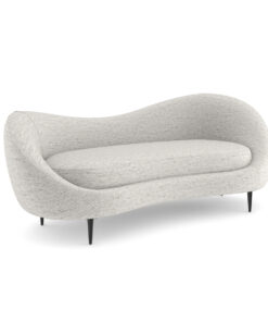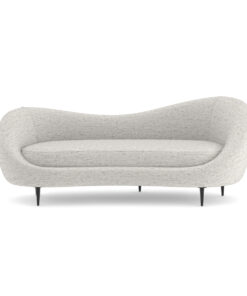 Išlenkta ir dosnaus dydžio „Formosa“ sofa yra apgaubta turi minkštu, asimetrišku atlošu, kuris sukuria itin vingiuotą formą. Šis lenktos formos baldas, visiškai aptrauktas blizgančiu austu šenilu su plieno mėlynos/pilkos spalvos dėmėmis, stovi ant subtilių kūginių metalinių kojelių, “Piano Black” spalvos.