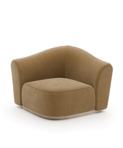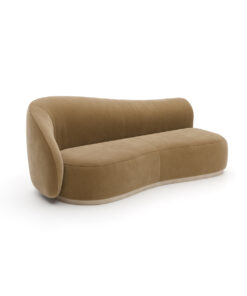 Skulptūriška ir viliojanti, ši sofa savo plačiais išlinkimais ir švelnia forma, sukuria elegantišką komforto ir rafinuotumo pusiausvyrą. Visiškai aptraukta sodriu „Camel Lux Velvet“ aksomu, ji spinduliuoja šilumą ir rafinuotumą, o minkštumas yra toks pat malonus, kaip ir atrodo.