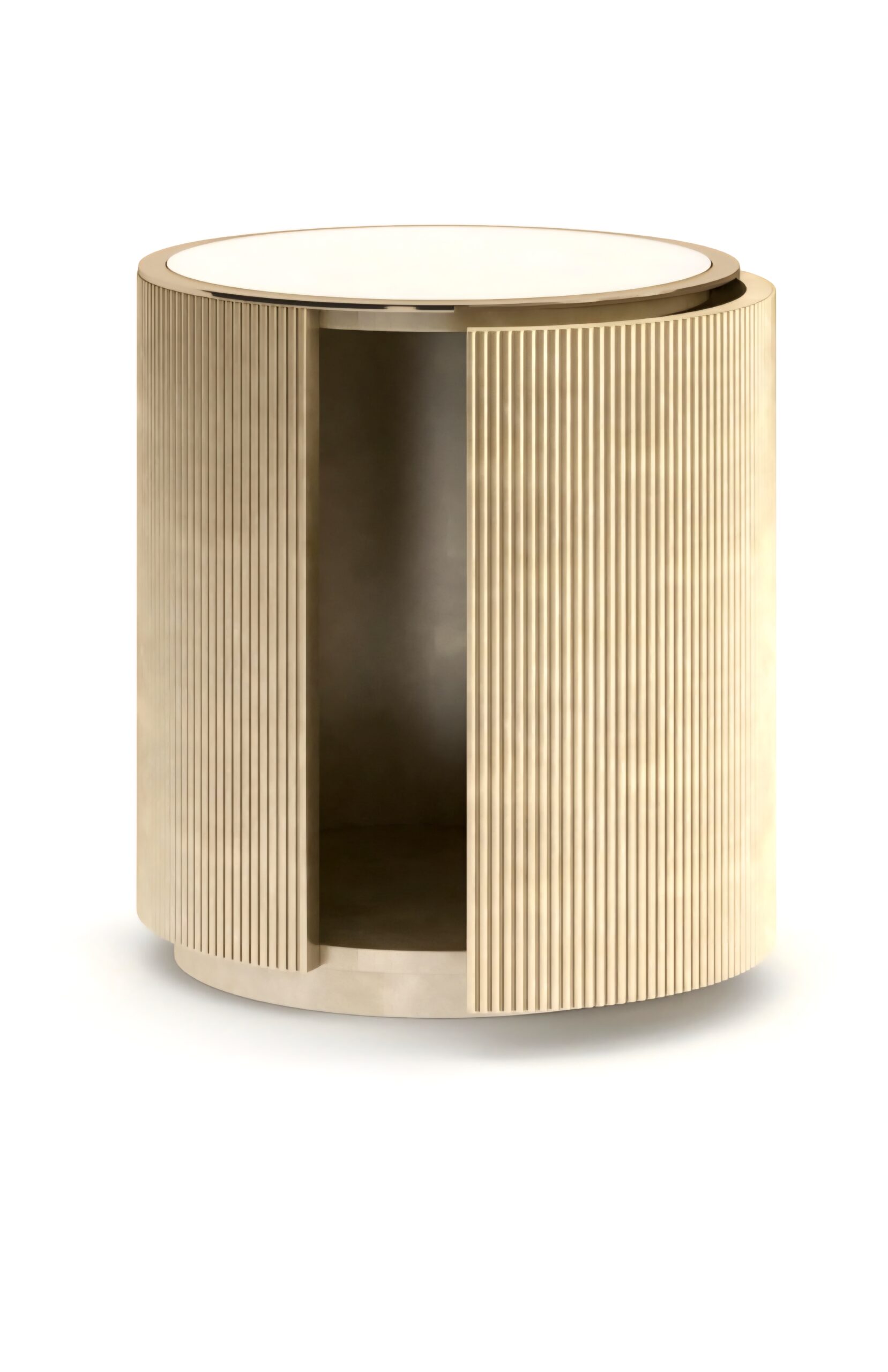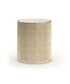 Toks nedidelis kolonos formos staliukas tinka bet kokiai erdvei. Stilingas dizainas, kuris turi skaidrų stiklinį stalviršį ir subtiliai rievėtą “Oracle” spalvos korpusą. Vienu paspaudimu uždaromose durelėse su „Whisper of Gold“ furnitūra atrasite vieną reguliuojamo dydžio lentynėlę su prie baldo derančia apdaila.
